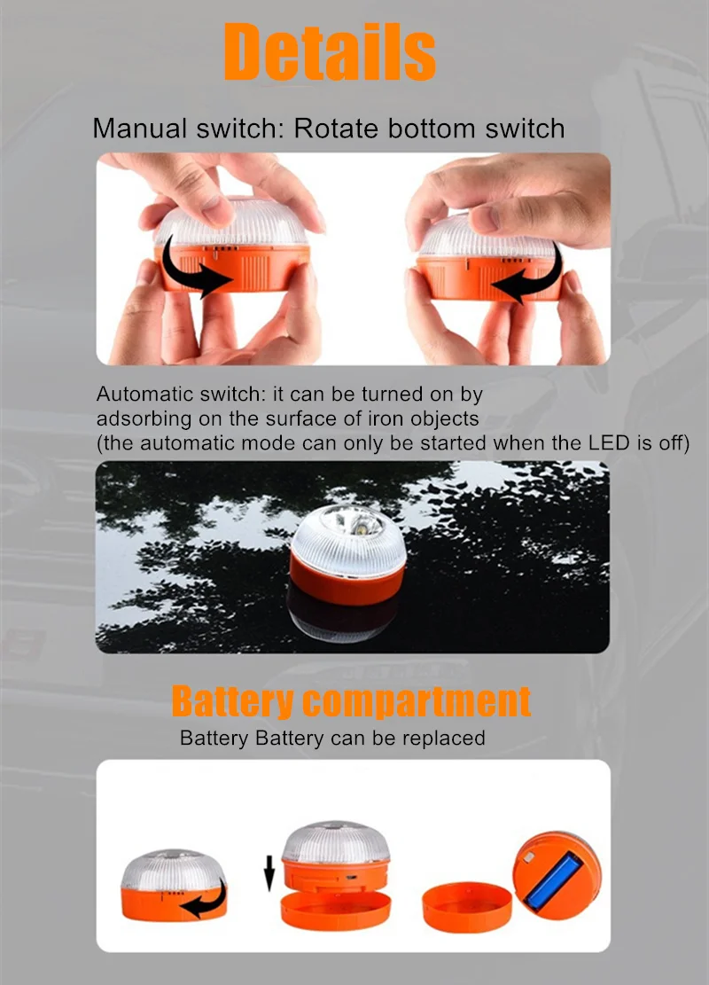 Product Name: Lampe Stroboscopique LED Rechargeable V16 Pour La Sécurité Routière, éclairage D'avertissement De Bord De Route Avec Lumière D'urgence Magnétique Dgt Pour Voiture, Lampe De Travail