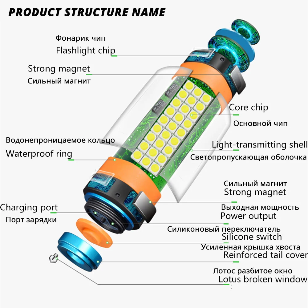Product Name: Lampe De Poche Multifonction Rechargeable à LED, Lanterne Pour Camping, Tente, Travail, Pêche, Voyant D'avertissement, étanche IP68, 7800mAH
