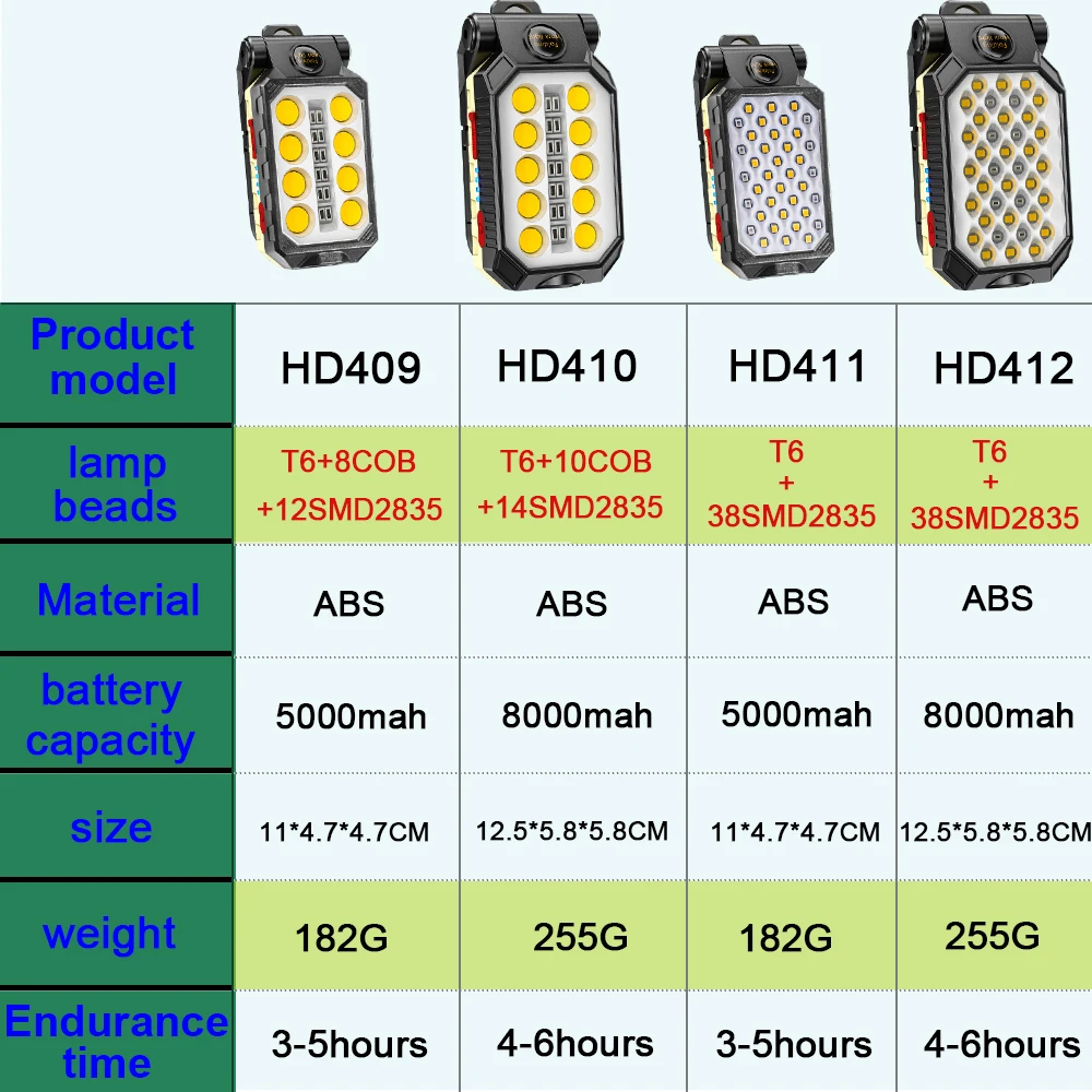 Product Name: 48W 8000mah USB Lampe De Poche Rechargeable COB LED Lumière De Travail IPX6 Imperméable Camping Lanterne LED Portable Avec Aimant De Conception